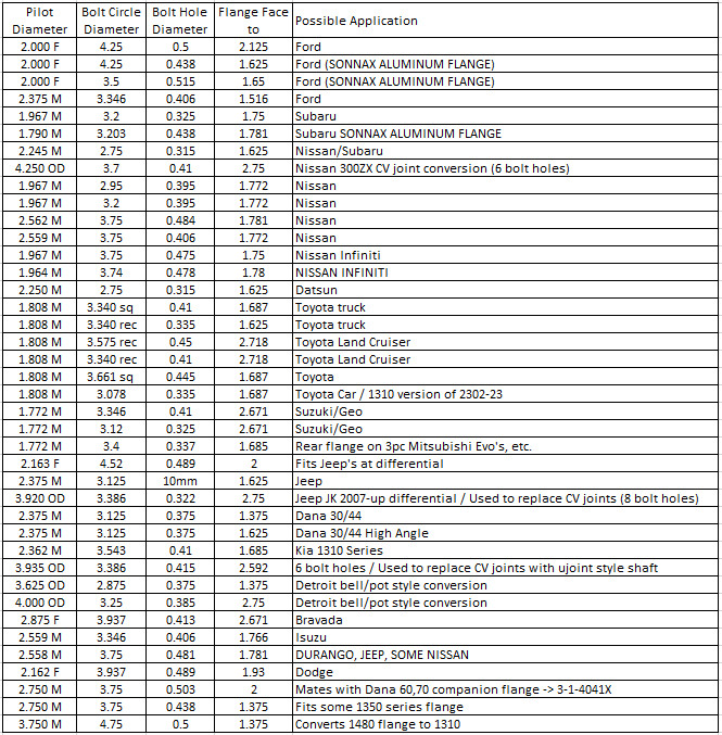 All flange yokes are equipped with 1310 series Spicer solid body U-Joints that can handle up to 499 hp.