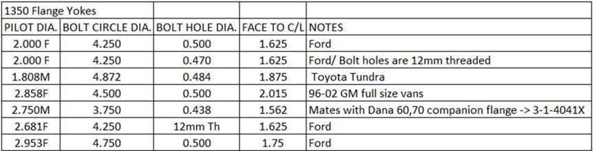 All flanges are equipped with 1350 series Spicer solid body U-Joints.