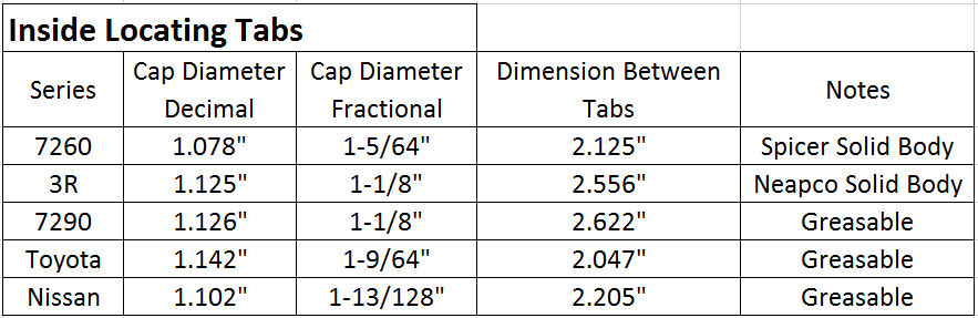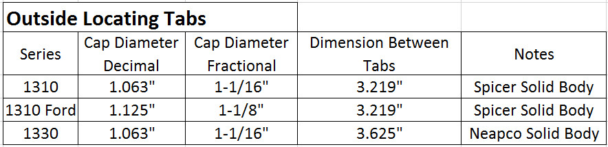 The following U-Joint combinations are available for the differential end of the driveshaft