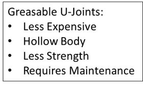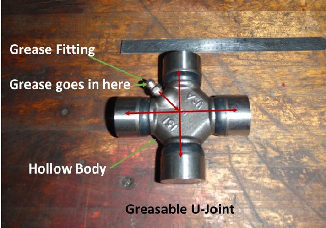 Greasable U-Joints are popular with the budget minded and those who have a strong desire to put a grease gun on everything. The circle track guys prefer the greasable joints. As old grease is pushed past the seals, the racers look for metal as a sign of wear.