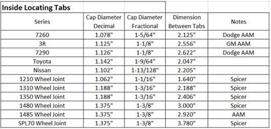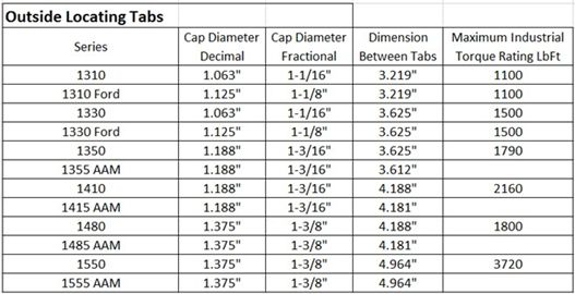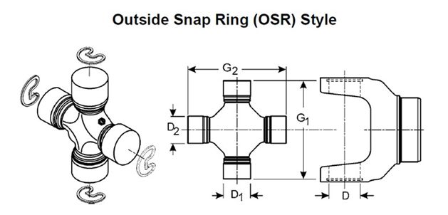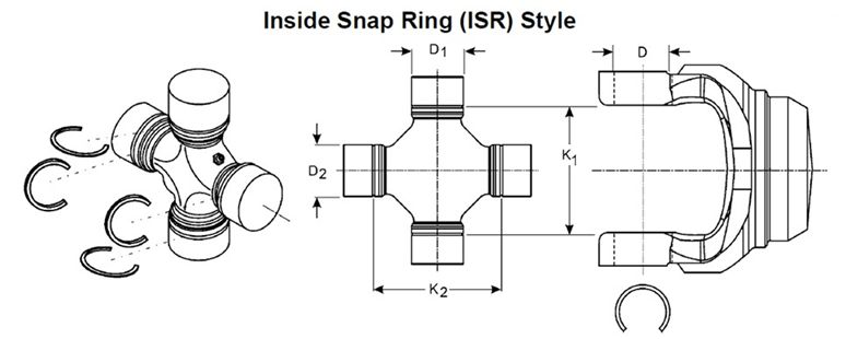 There are countless variations of U-Joints that accomodate the different applications and manufacturer design styles. The U-Joint Series is specific to a manufacturer's proprietary design. The most common series will be either inside or outside lock-up, referring to the method for retaining the U-Joint cap.